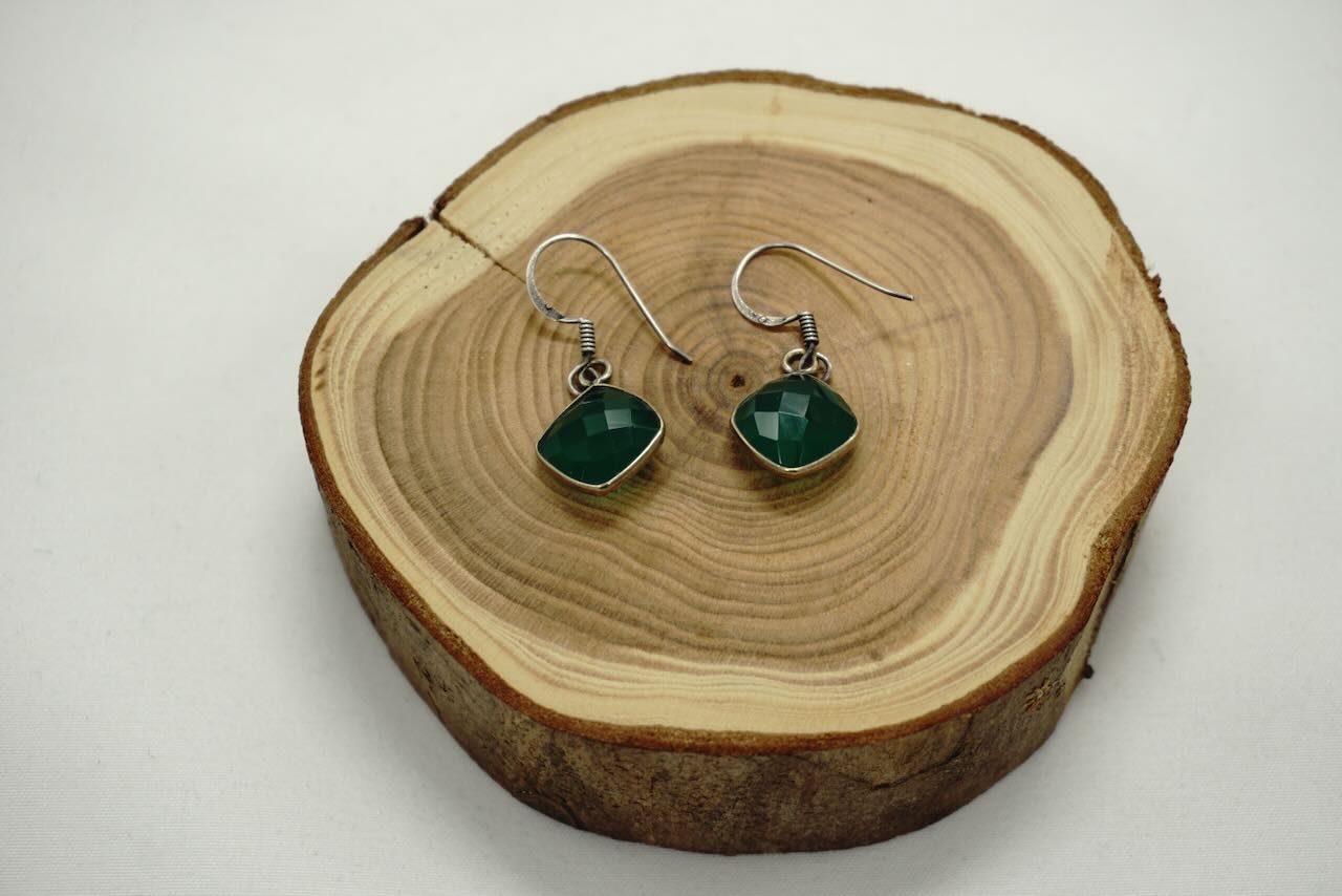 Belles boucles d’oreilles indiennes en argent avec une pierre en Cornaline.