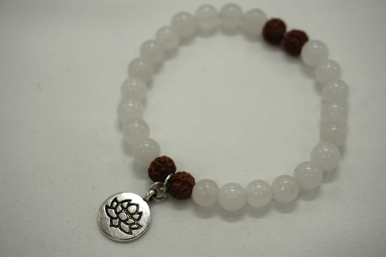 BRACELET en pierre de Lune / graine de rudraska et breloque lotus