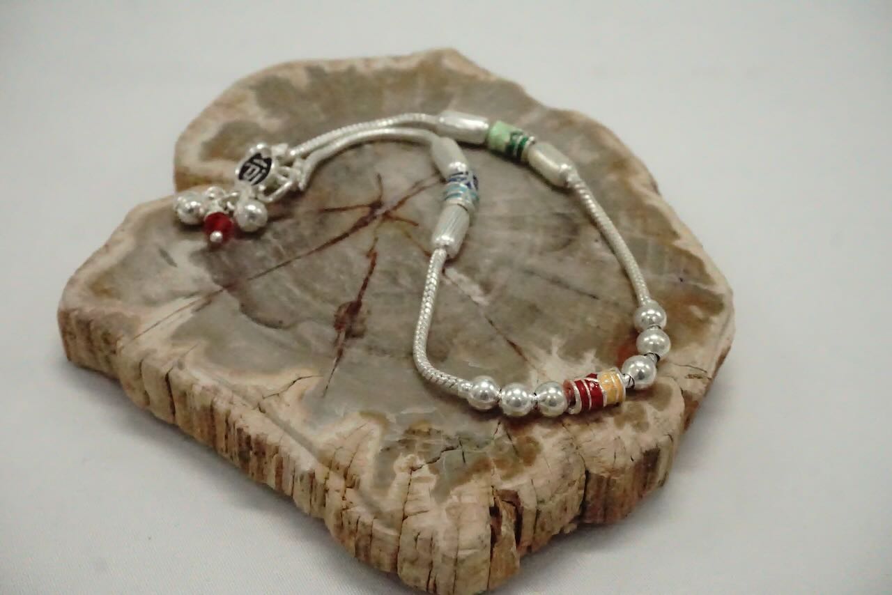 CHAINE DE CHEVILLES argent avec perles en argent et des perles colorées