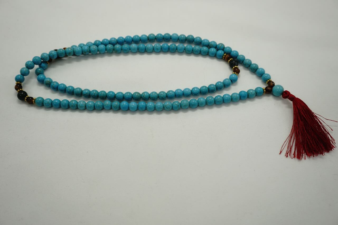 Collier Mala tibétain pierres naturelles turquoise oiel du tigre lapis-lazuli avec 108 perles