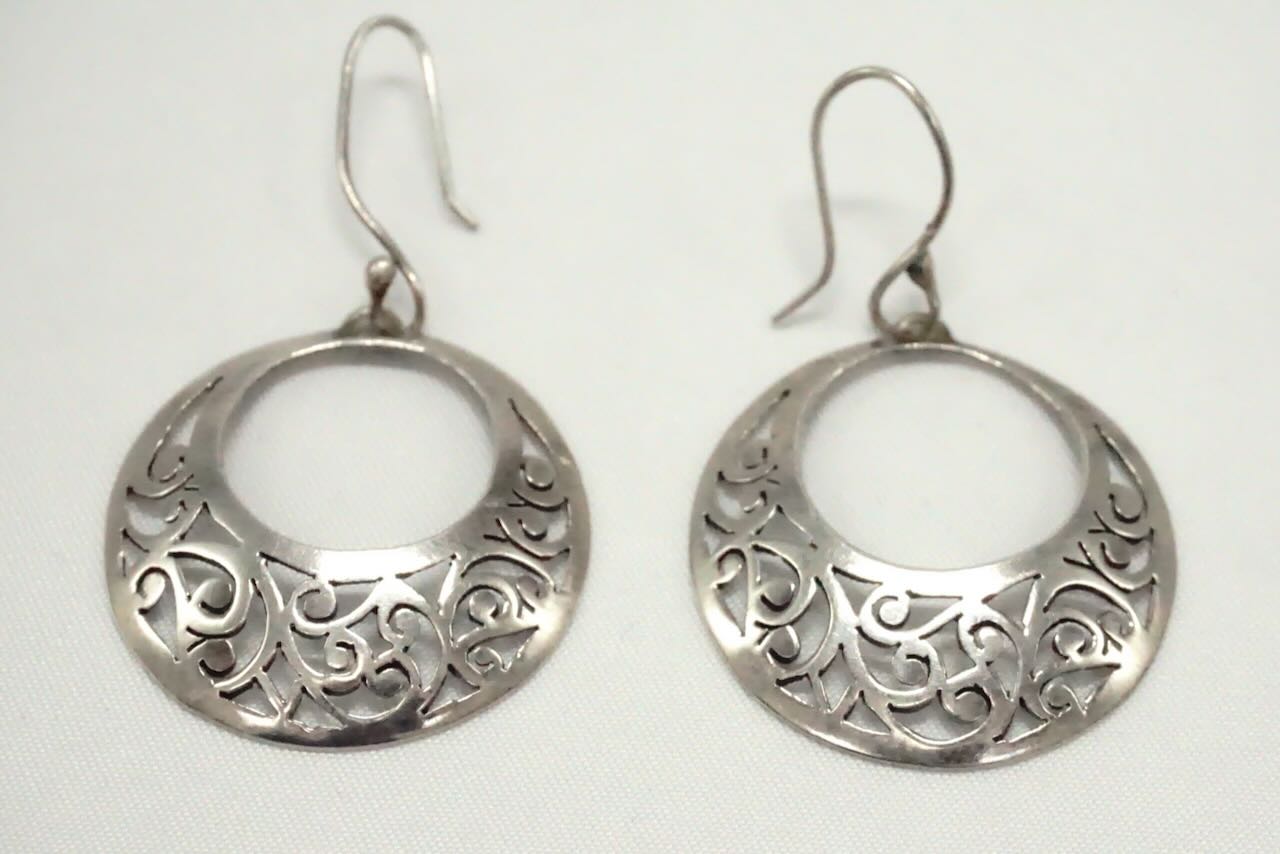 Ces boucles d’oreille sont des créoles ethniques en argent. Elles sont finement ciselées à la main, vous les porterez avec tout.